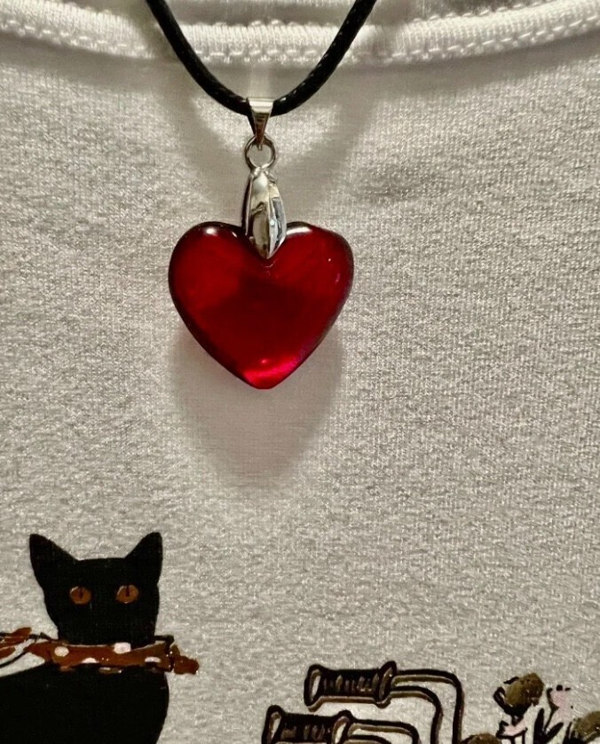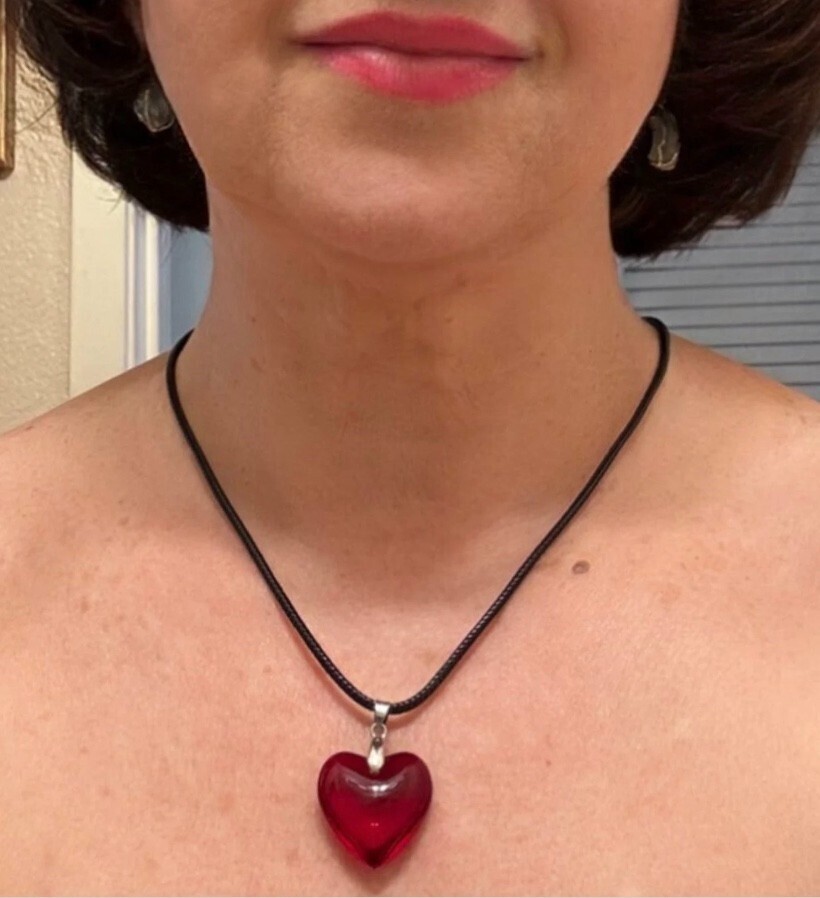 Red Glass Small Heart Necklace Deep Red Puffy Heart Pendant Valentines Day
