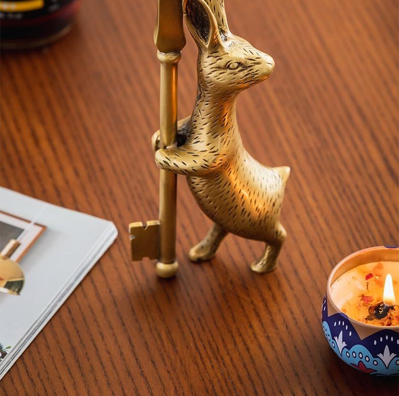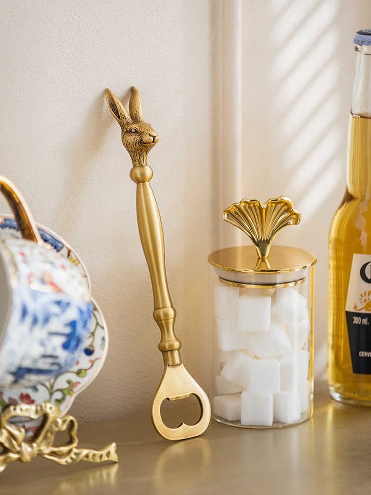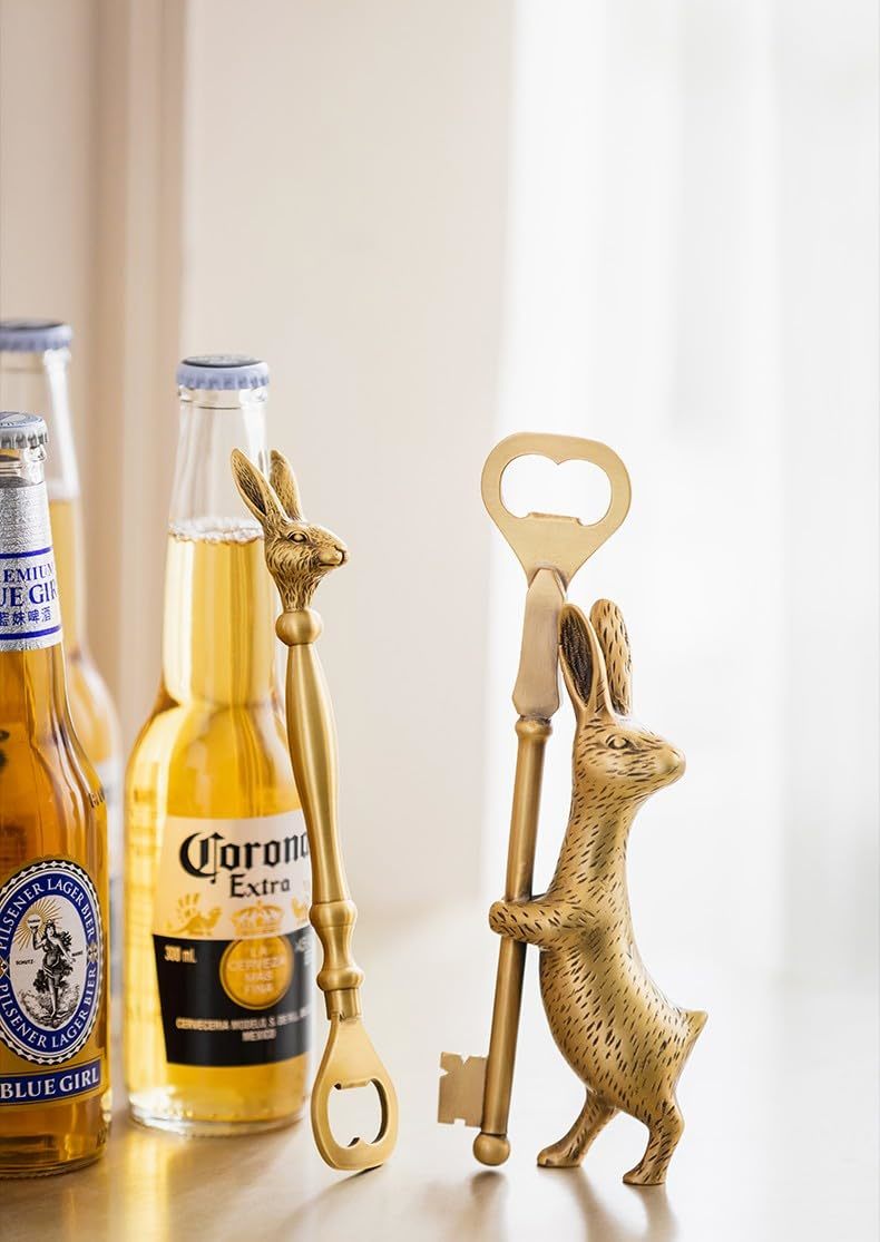 Vintage Brass Rabbit Bottle Opener Set, Unique Luxury Beer Opener Key & Bunny He