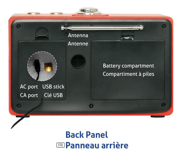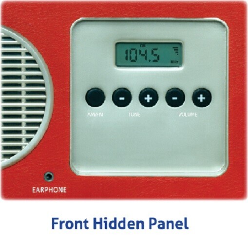 The sleek, retro housing is constructed from wood to last a lifetime, while many of the player?s controls ? including volume and tuning ? are concealed behind a stylish cover to prevent accidental changes. The cherry red art deco housing evokes an earlier era while being more visible to those with visual impairments.