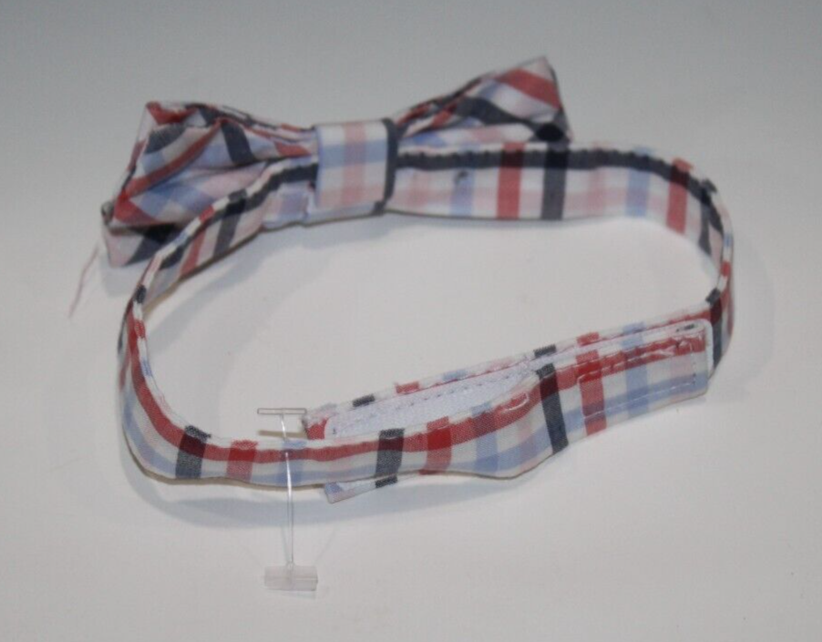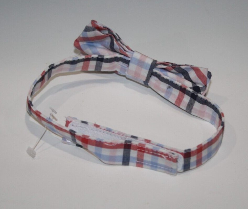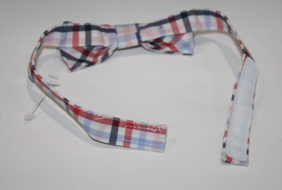 Infant Baby Boys Red White Blue Plaid Bow Tie 6-9 Months Hook Loop Closure NEW