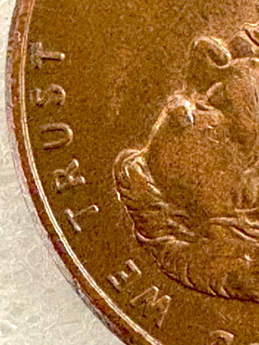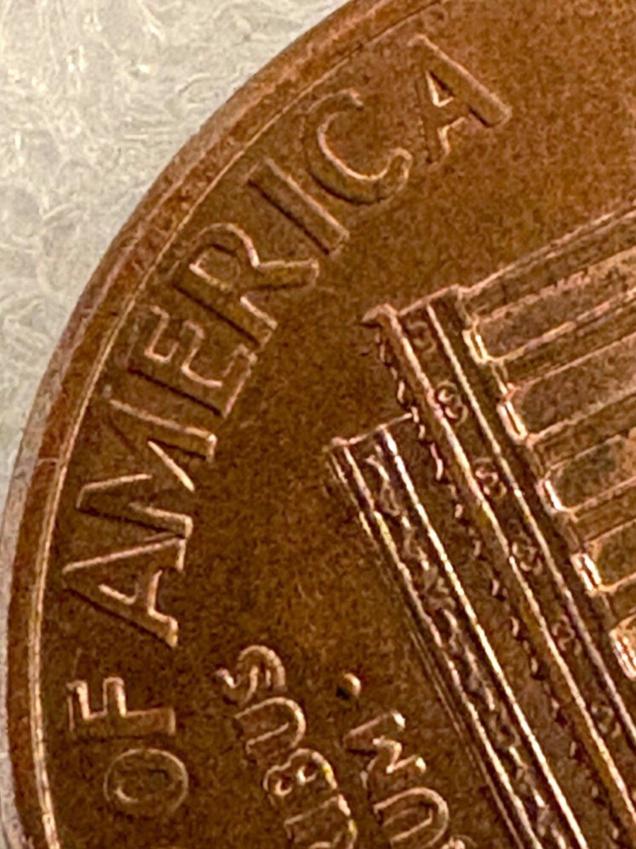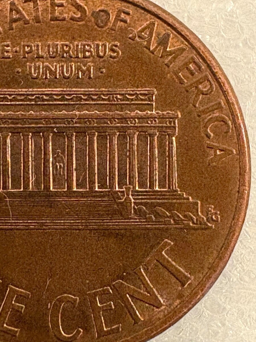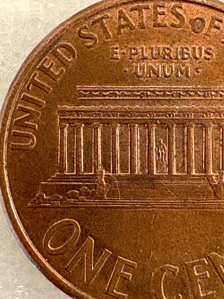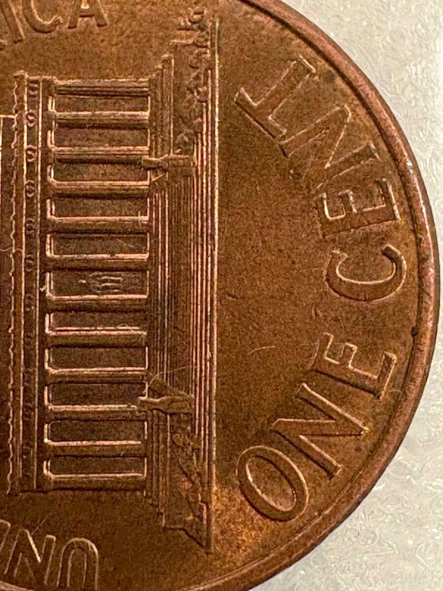 1996-D Lincoln Memorial Error Penny; Double Die, Close “AM”, Rail-RIM