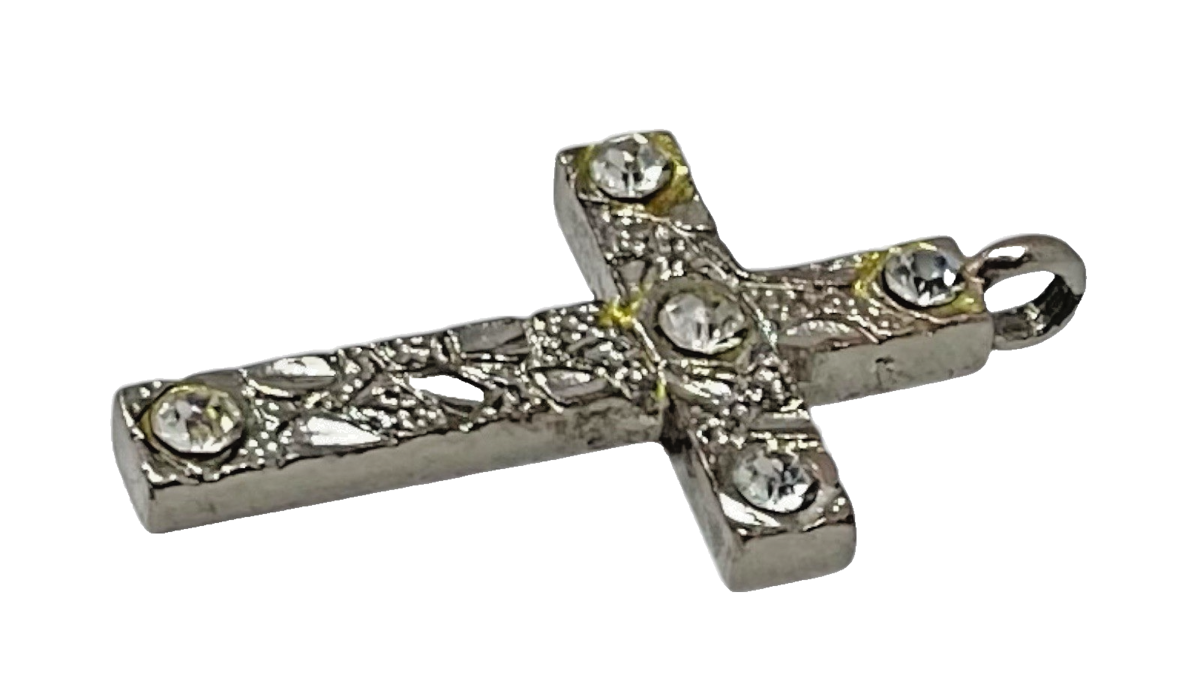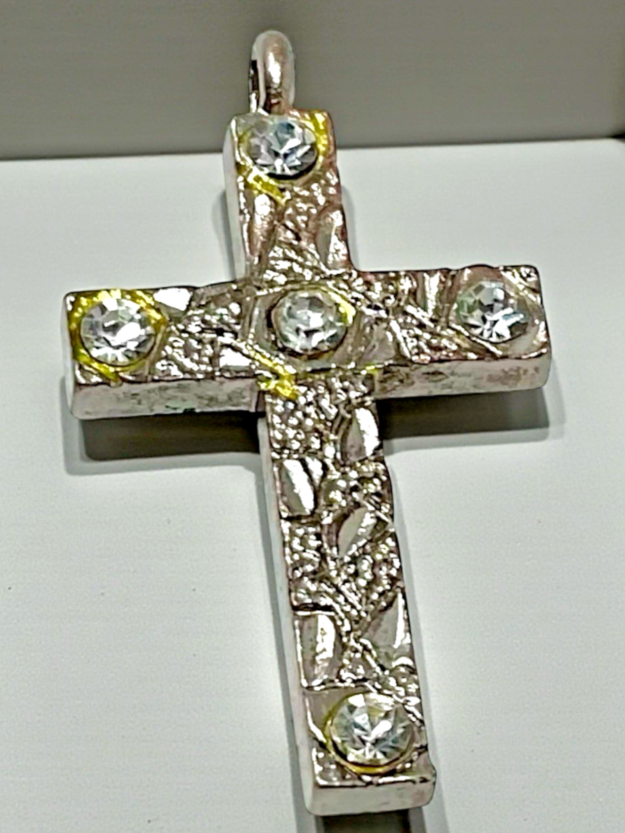 Vintage Rhinestone Cross Pendant Silver‑Tone 1.25" x 1" Religious Jewelry