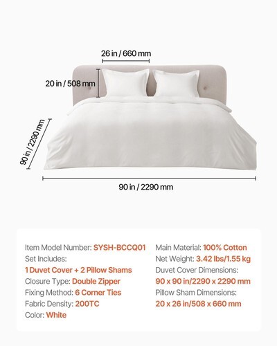 Upgrade your bedding with our duvet cover set, featuring 1 duvet cover and 2 pillow shams made from 100% pure cotton. Soft and breathable, it keeps you and your family comfortable all night long. The double zipper closure and 6 corner ties keep your comforter securely in place and easy to care.