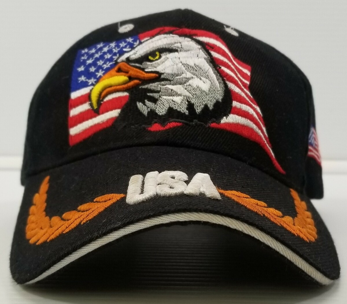 M) USA American Bald Eagle Flag Baseball Cap Black Hat