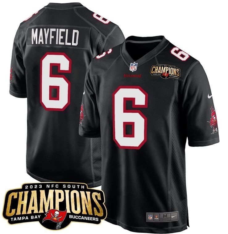 Baker Mayfield #6 2023 NFC Champions Black Bucs Men's Replica Jersey