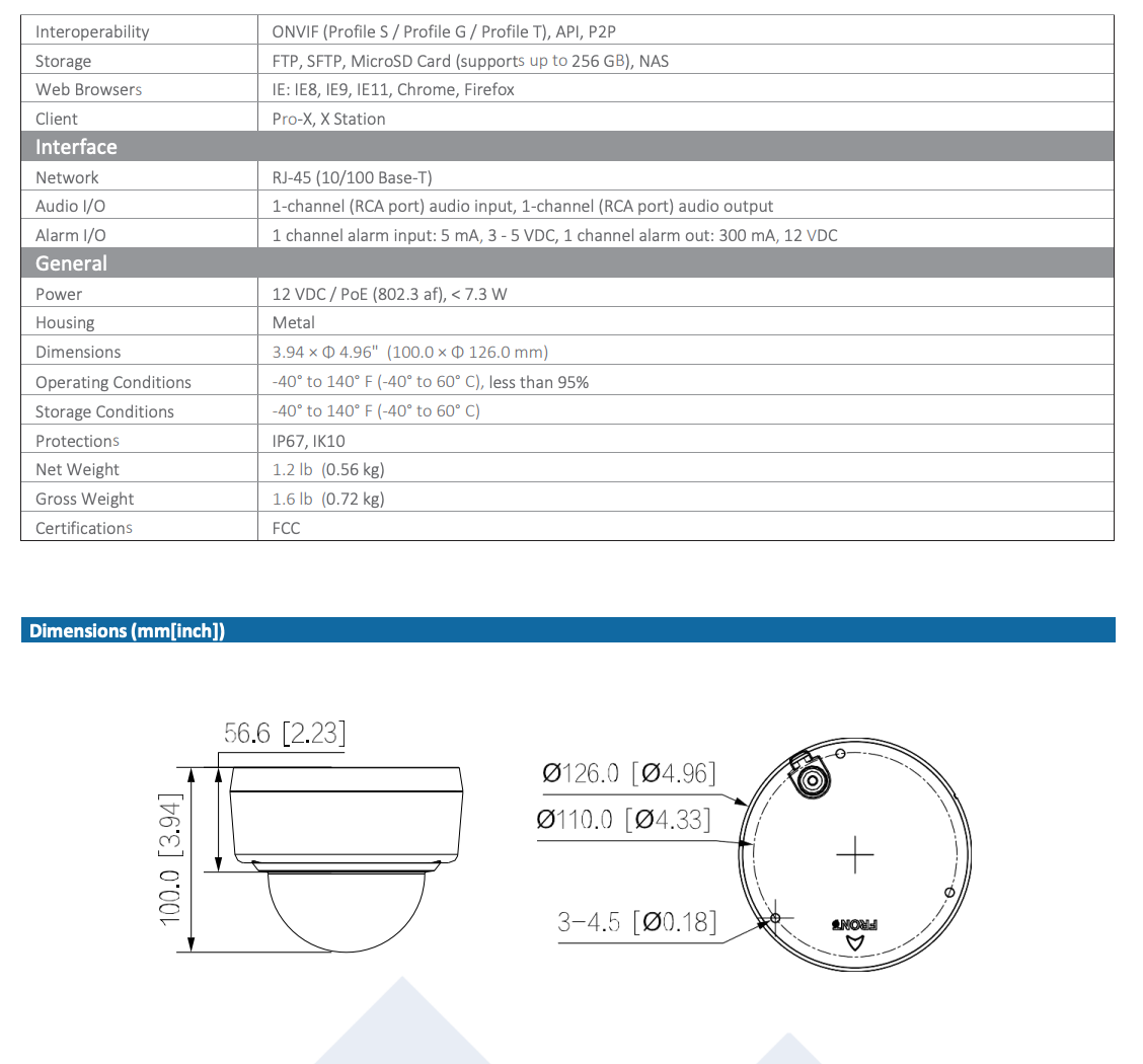Pro-X, IP, 4 MP, 2.8 mm, Fixed Lens, Dome, 120 dB True WDR, 3D DNR, SD Card, Audio Alarm I/O Channel, POE, IP67 and IK10 Protection, MD 2.0 - Human and Vehicle Detection