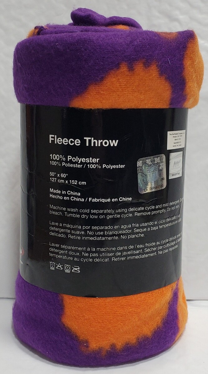 This is a 50" by 60" Clemson Tigers Fleece throw blanket.