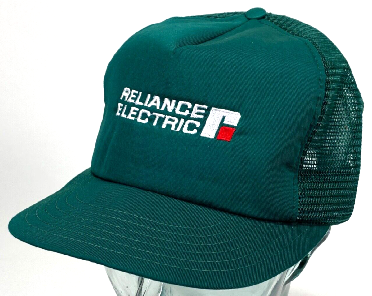 Vtg RELIANCE ELECTRIC Hat-Green-Mesh-Snapback-Embroidered Logo-Victory Caps