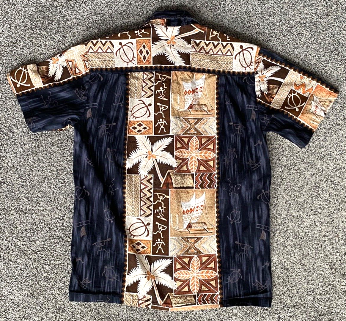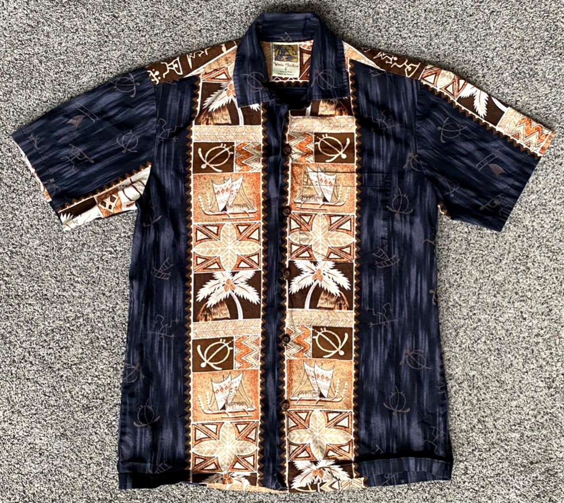 VTG Winnie Fashion Hawaiian Shirt-Sz S-Turtles, Sail Boat, Hut, Palm Tree-Cotton