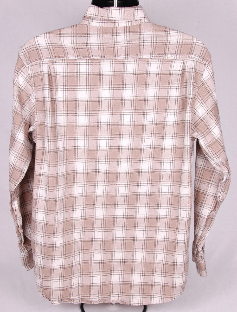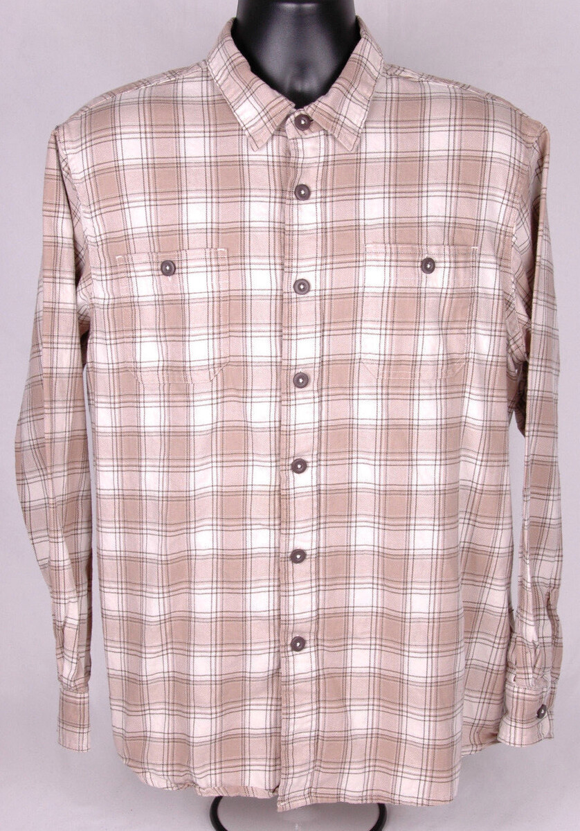 WRANGLER Western Shirt-L-Tan-Button Front-Plaid-Rodeo Cowboy Ranch Farm Work