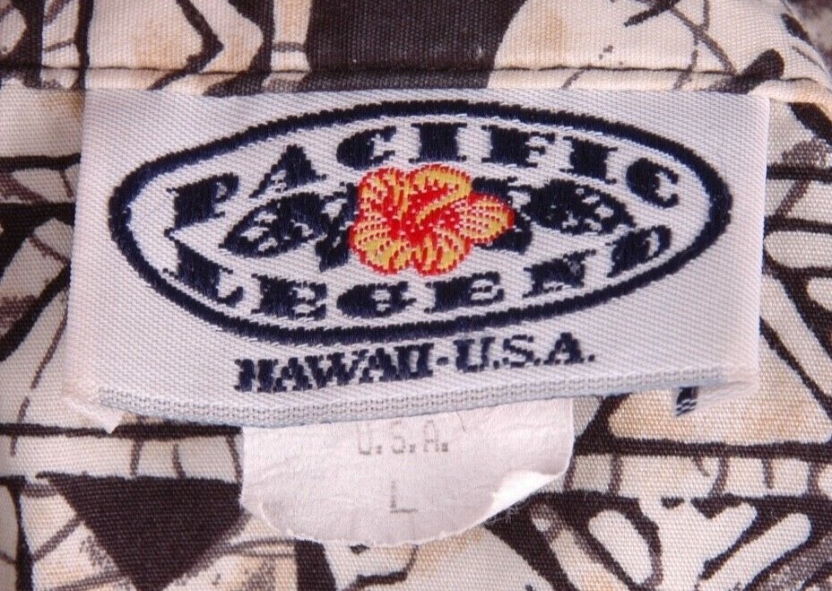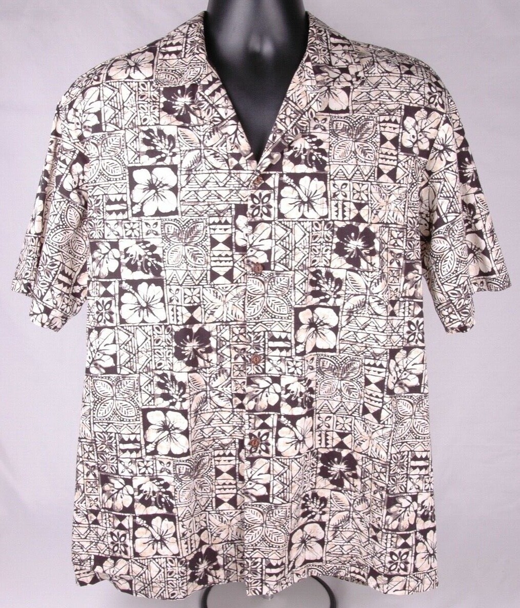 Pacific Legend Hawaiian Shirt-L-Floral-Black / Tan-Button Up-Made in USA