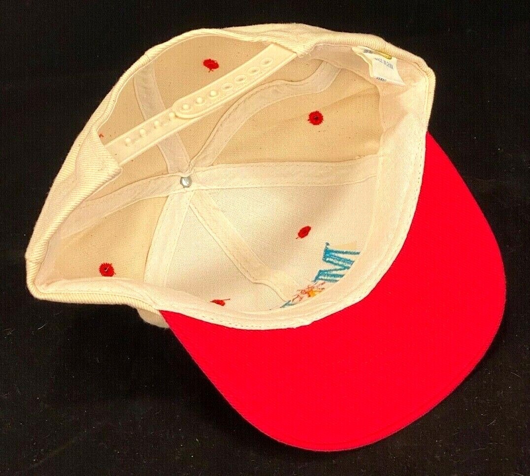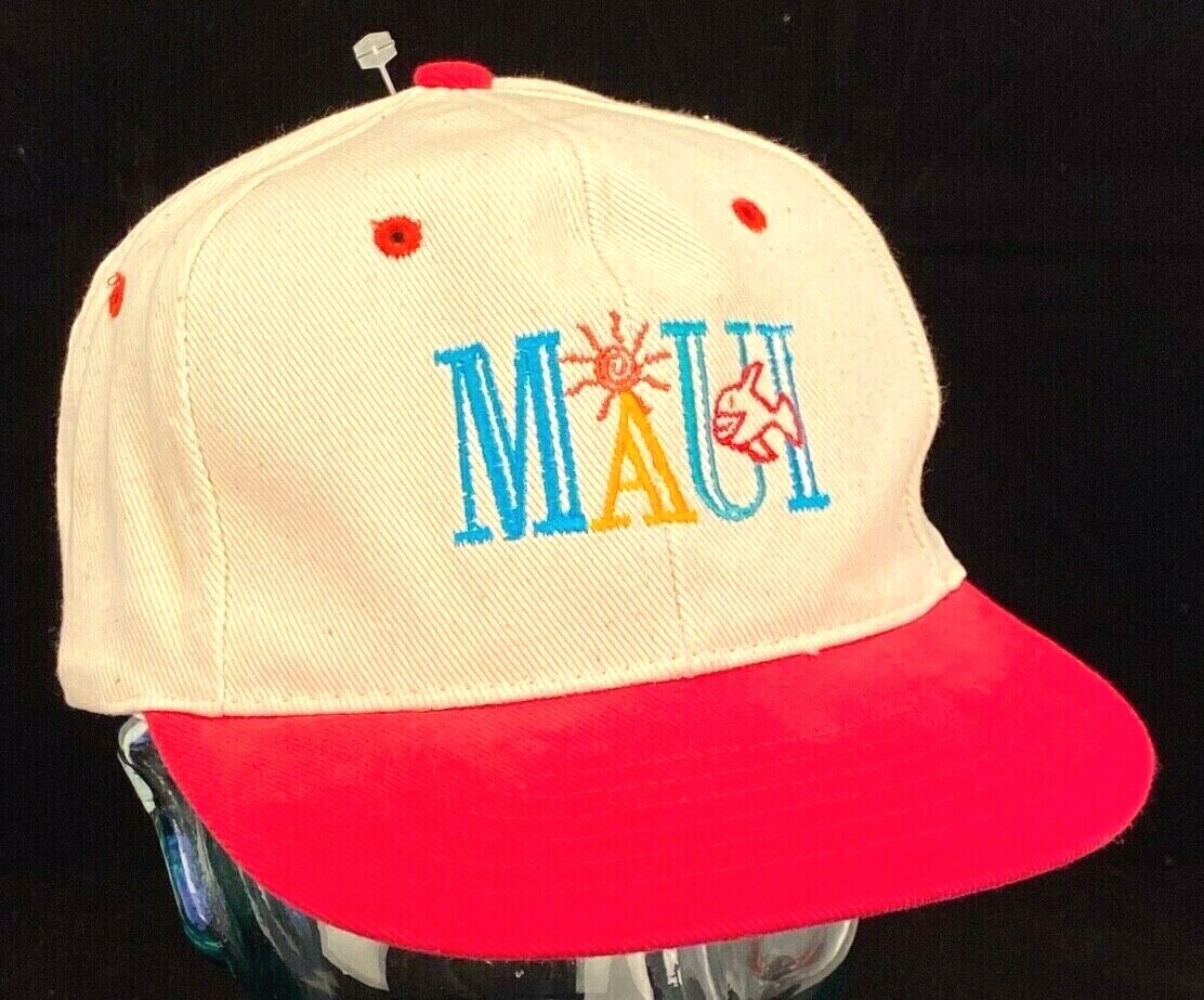 MAUI Hat-Snapback Cap-Hawaiian Headwear-Embroidered-Vtg-Off White, Red-Fish Sun