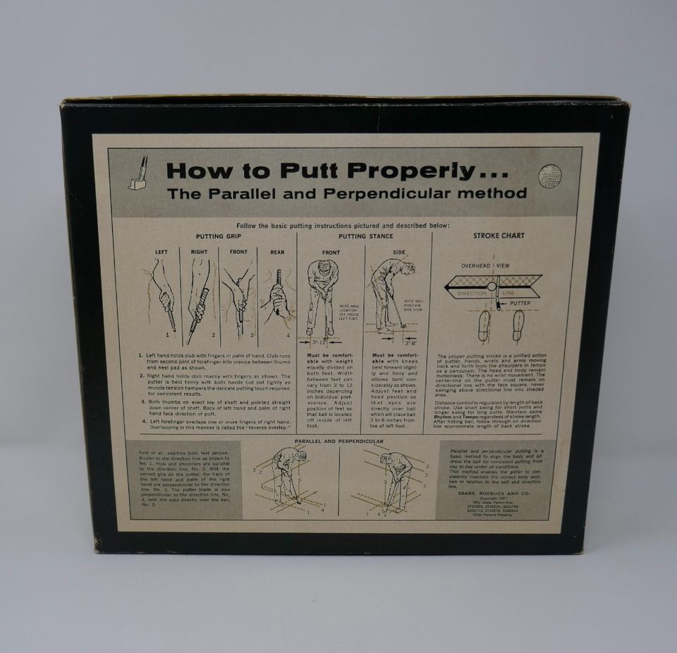 The Sears 1967 Electric Putt Return Set is a vintage golf training aid designed for indoor use. It includes a putting guide, electric putt return, instructions, putting mat, and flag. This beginner-level set is powered by an electric corded, making it convenient and durable for adult golfers looking to improve their putting skills. With a vintage design and high durability features, this putt return set is a nostalgic and practical addition to any golfer's practice routine.
