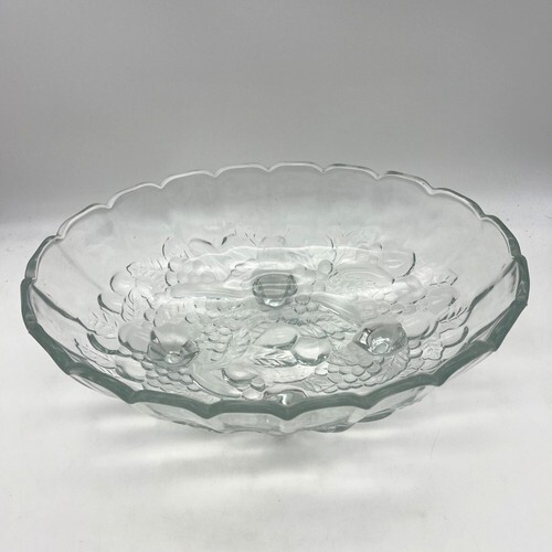 Elevate your home decor with the Indiana Iridescent Carnival Glass Oval Harvest Grape Amber Footed Fruit Bowl, a stunning piece that exudes vintage charm. Measuring an ample 12 inches in length and 8.5 inches in width, this fruit bowl is both functional and decorative. The rich gold color and carnival glass production style ensure that it stands out as a unique item in your collection.