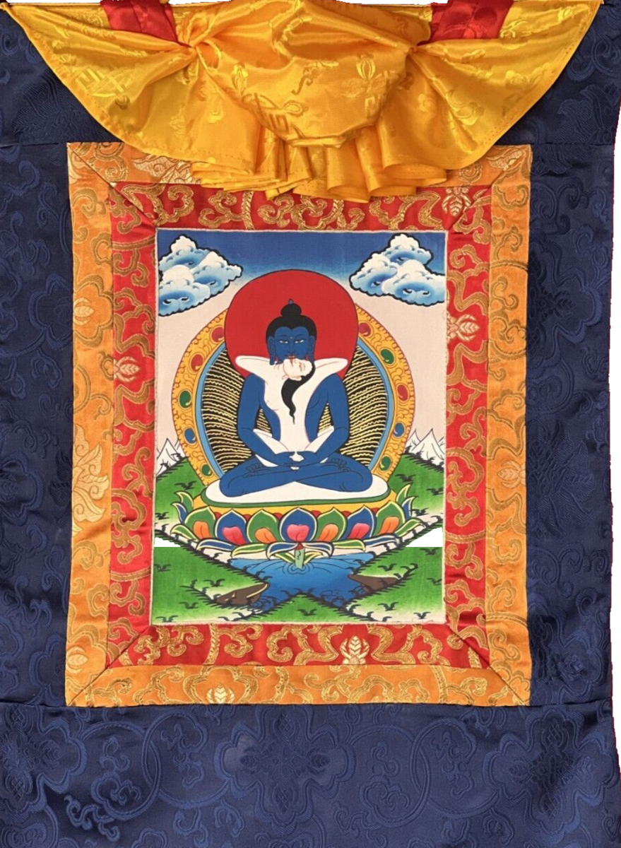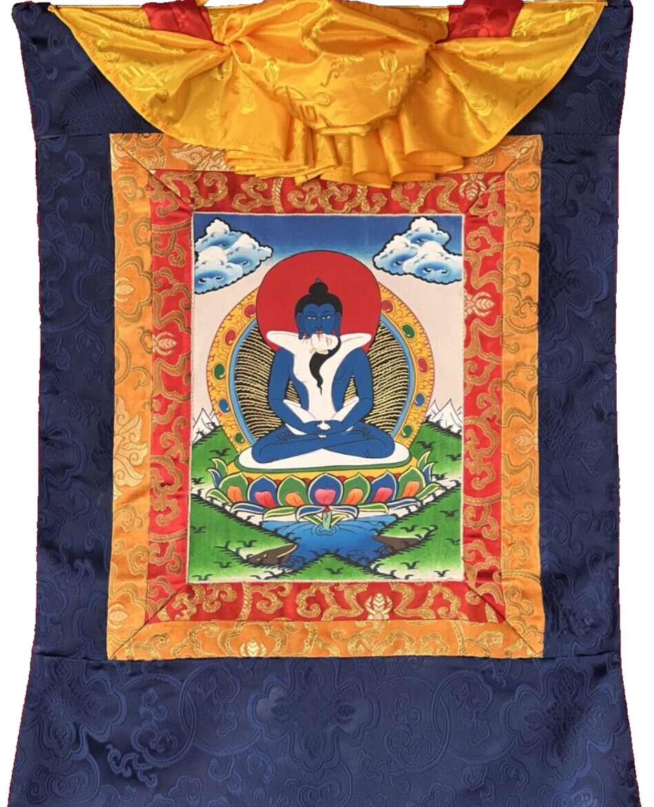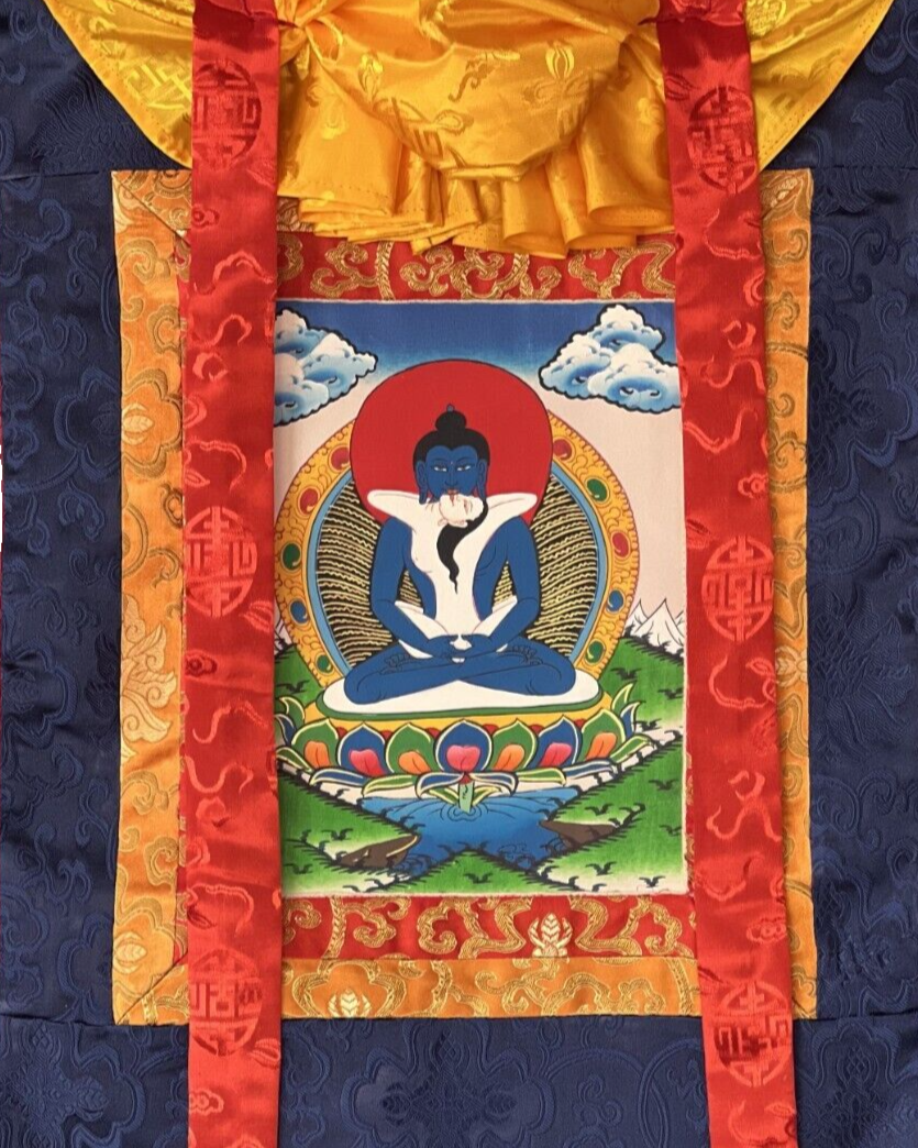 ORIGINAL HAND-PAINTED SAMANTABHADRA TIBETAN THANGKA PAINTING SILK BROCADE