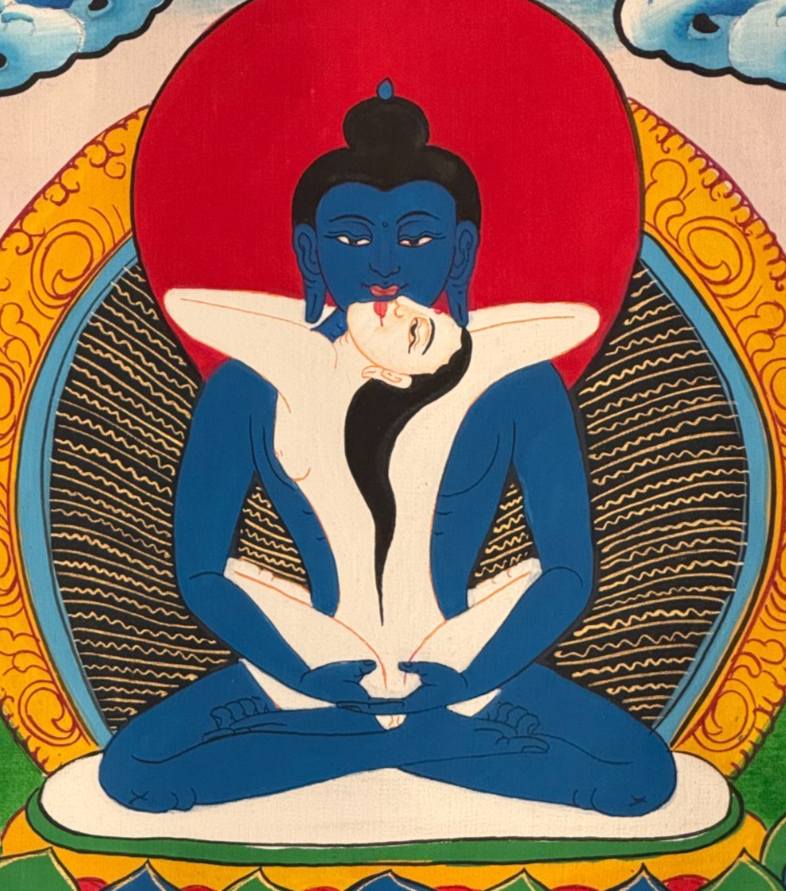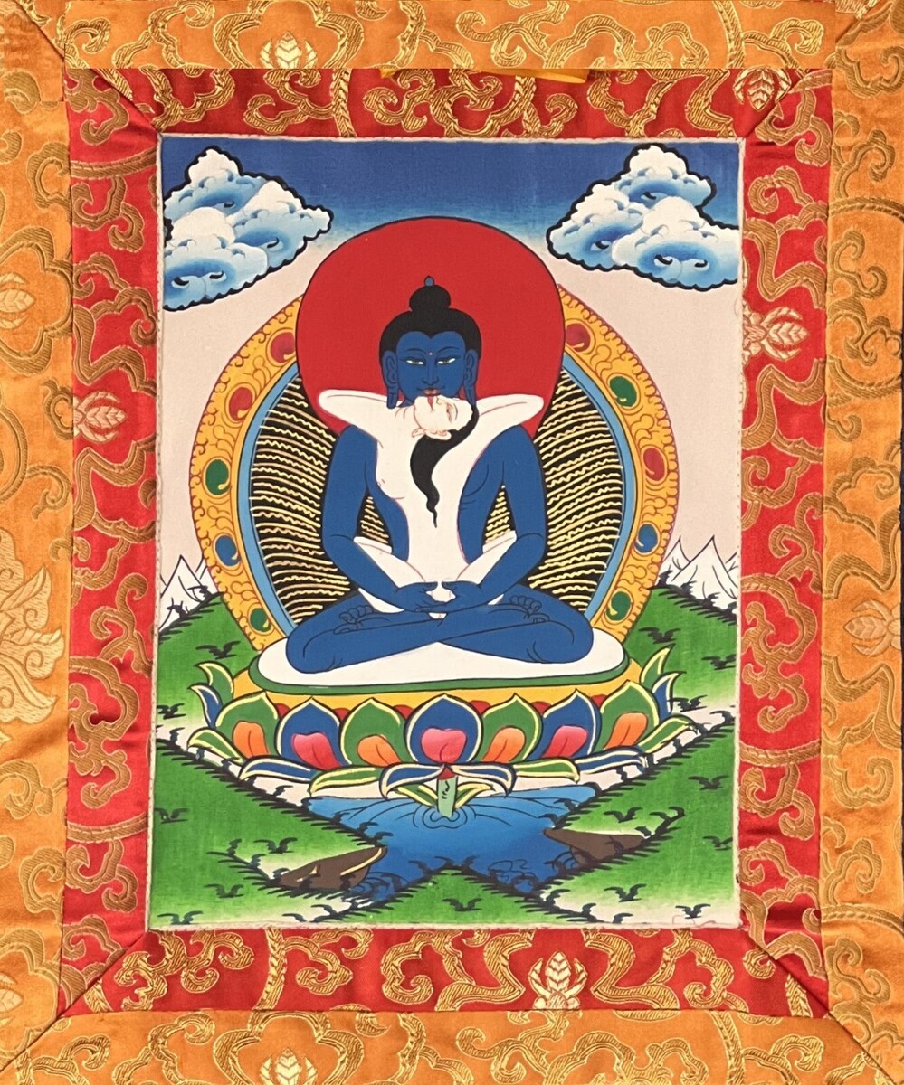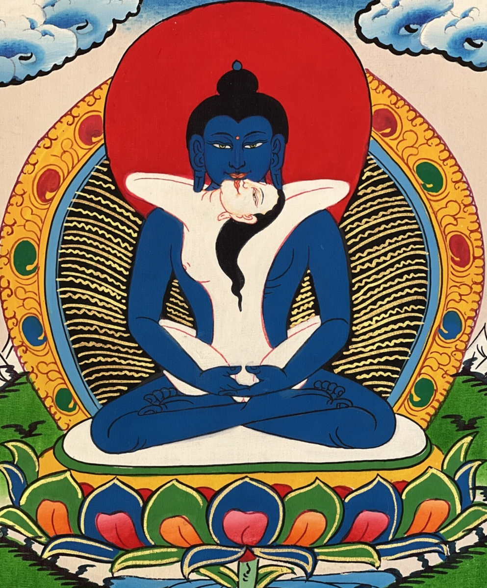 In this painting, he sits in a close embrace with his consort Samantabhadri.