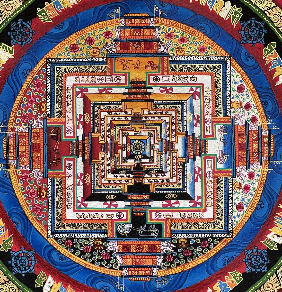 HAND-PAINTED KALACHAKRA MANDALA -THE WHEEL OF LIFE/TIME ORIGINAL- UNIQUE