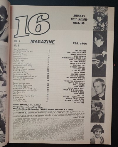 This magazine may have the front and back cover separated--It may have no back cover at all--It may have writing in it--and there may be torn and roached area's along the edges--it was a very prized possession of a teenage girl from the 60's