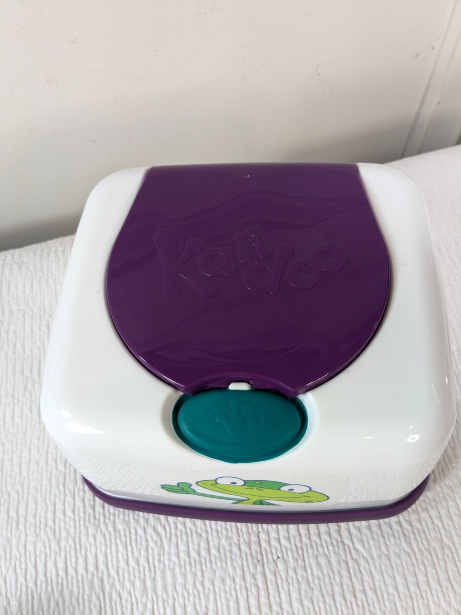 Small mark/discoloration on the back as shown. Some minor wear from use. EMPTY container for Kandoo wipes. See pics.