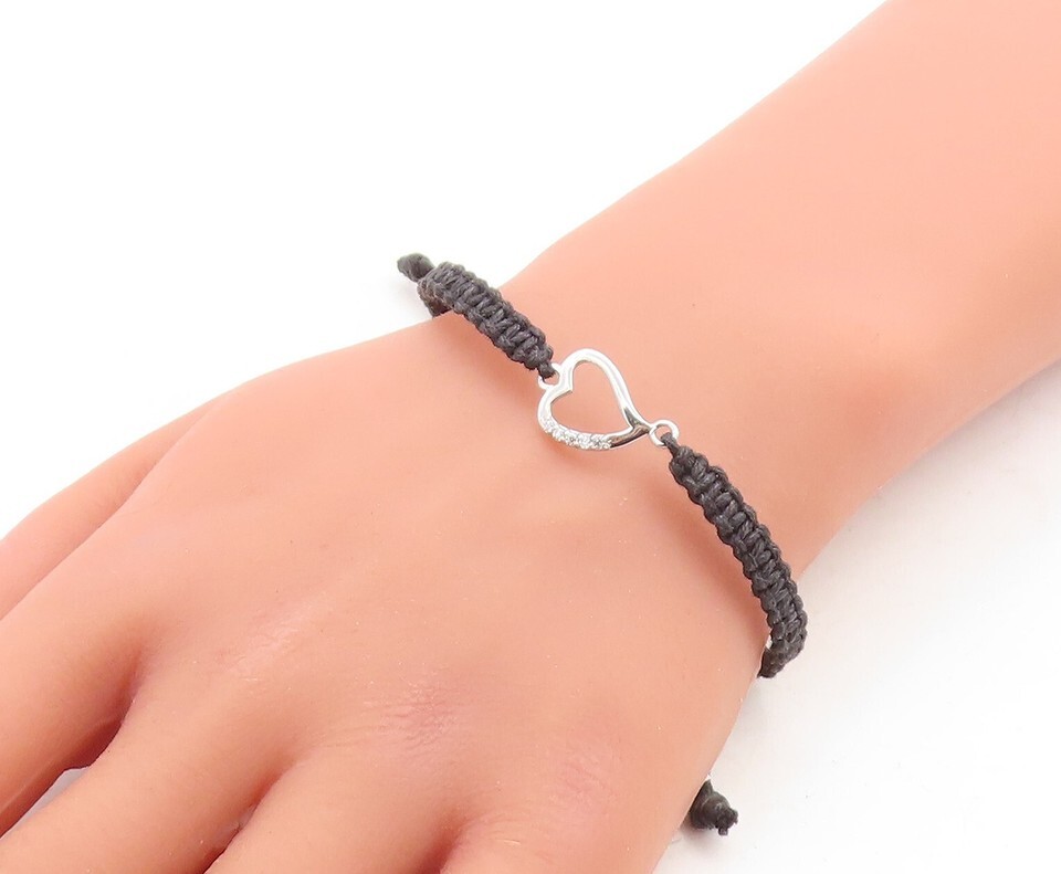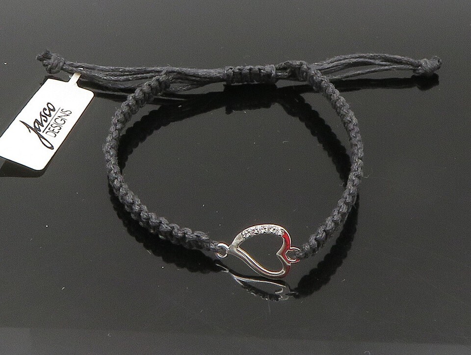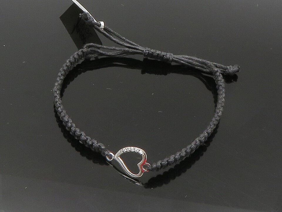 925 Silver Cubic Zirconia Love Heart Adjustable Friendship Bracelet BT1019