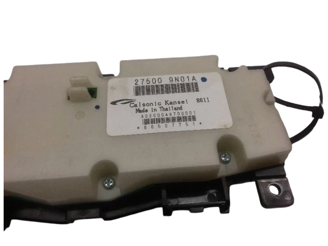 This OEM A/C temperature climate control unit fits 2009?2014 Nissan Maxima models and carries part number 27500-9N01A. It controls the vehicle?s heating and air conditioning temperature settings to ensure proper climate system operation. The unit is in good used condition with normal wear from use and shows no cracks, broken buttons, connectors, or other damage. All mounting points are intact. This is a direct replacement OEM part and will ship with proper tracking.