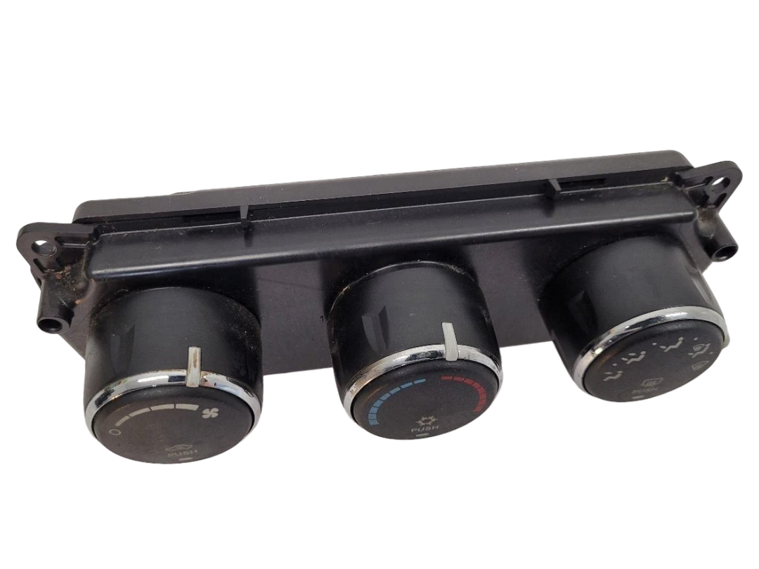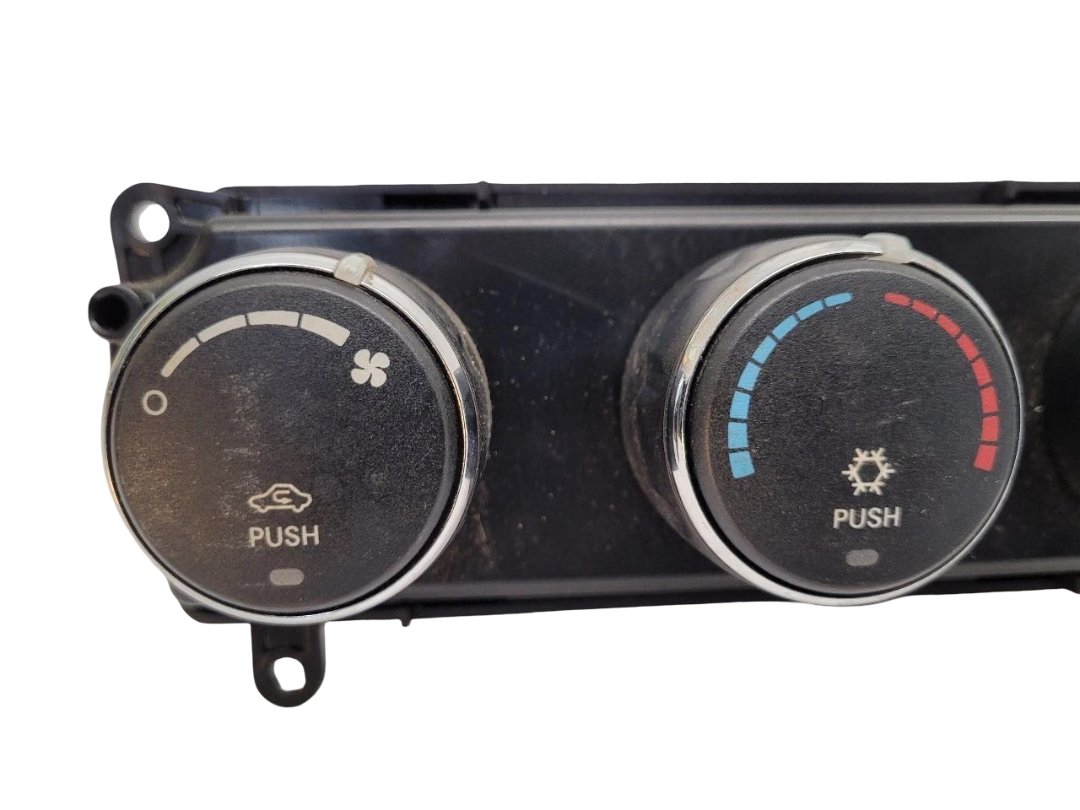 This OEM A/C temperature control unit fits 2008?2009 Dodge Nitro SUV models and carries part number P55111980AB. It controls the vehicle?s heating and air conditioning temperature settings to ensure proper climate system operation. The unit is in good used condition with normal wear from use and shows no cracks, broken buttons, connectors, or other damage. All mounting points are intact. This is a direct replacement OEM part and will ship with proper tracking.