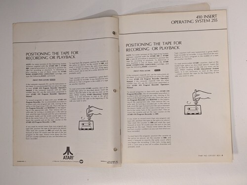 Atari Ordinateur Système Atari 410 Programme Enregistrement D'Opérateur Manuel