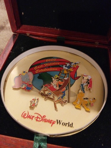 2000 Walt Disney World Cast Holiday Celebration Set 5 Pins, in Wooden Box