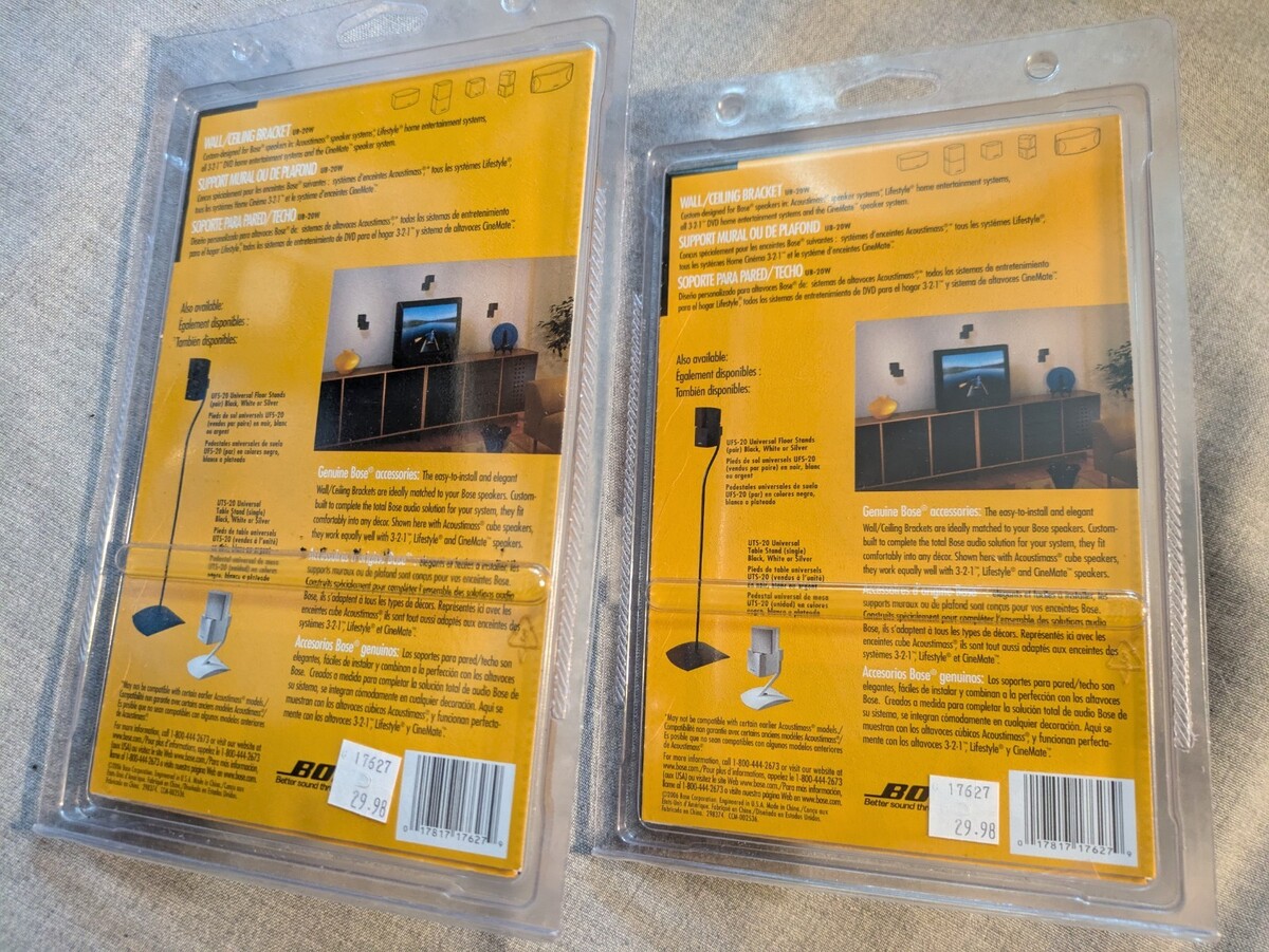 Up for sale is a lot of 2 NEW Bose Acoustimass Speakers Wall Ceiling Bracket Black Genuine UB-20W.