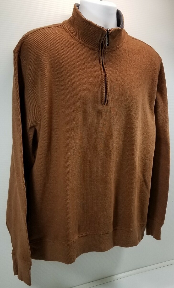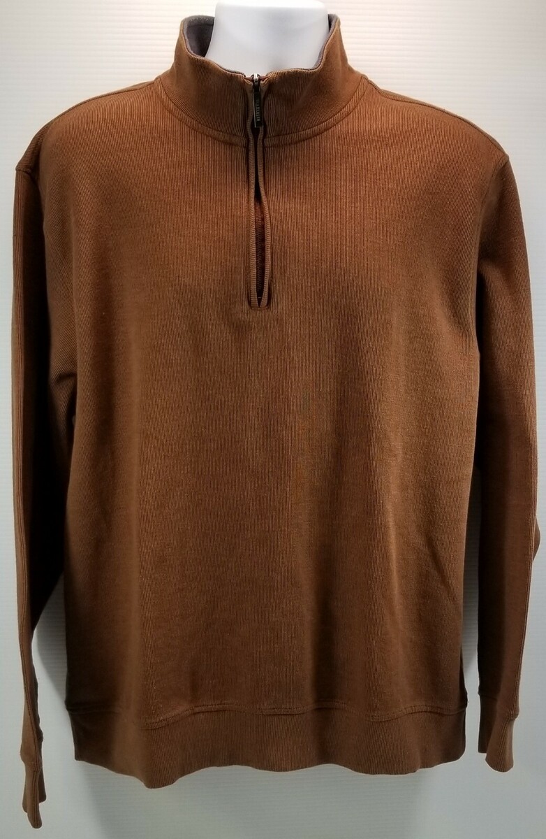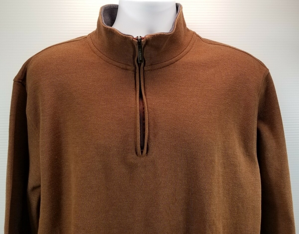 N) Van Heusen Men's Brown Quarter Zip Pullover Sweater Sweatshirt XXL