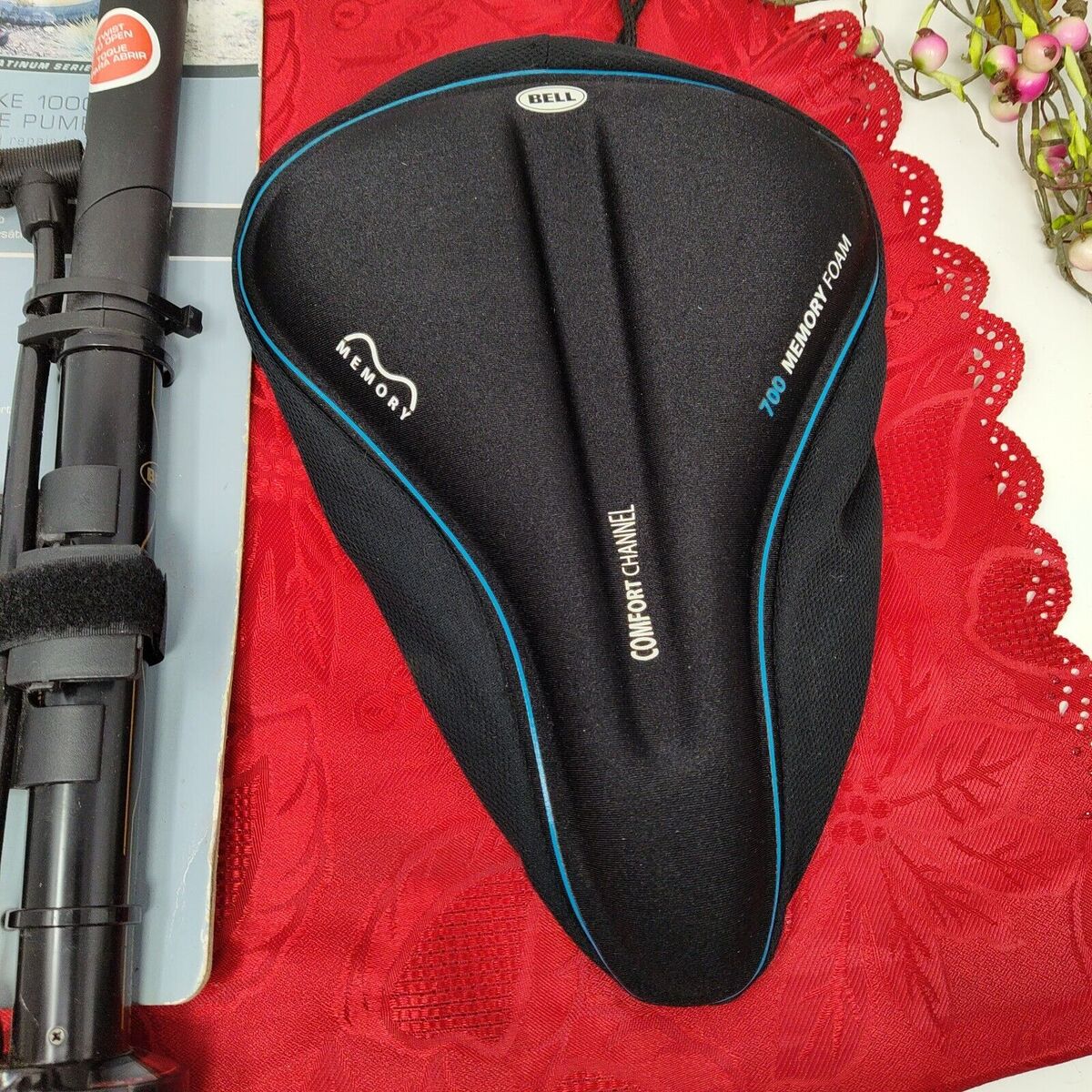 (2) Bell 700 Memory Foam Pad Padded Black Bicycle Seat Cover & Tire Pump Airstrk
