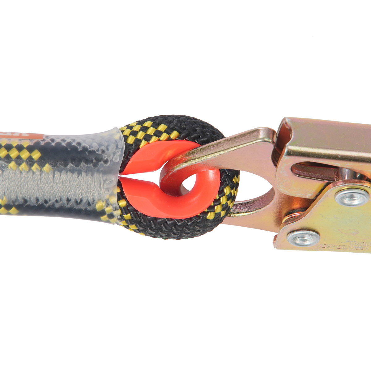 Premium Braided Rope: Crafted from high-strength polyester material, this fall protection rope offers exceptional durability. Its braided design enhances strength and resistance to abrasion and regular use. Equipped with a hardened plastic thimble and stitched eye terminations, it ensures unbreakable reliability.