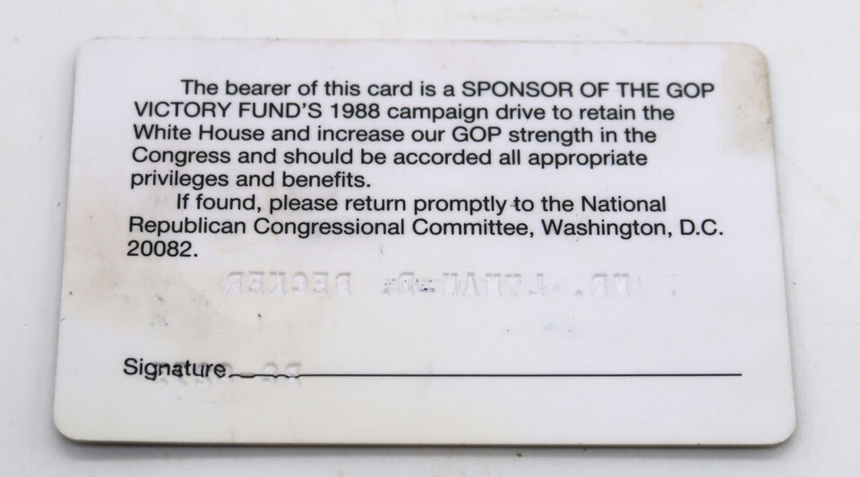 Vtg 1988 Republican Congressional Committee GOP Victory Fund Donor Card Rare