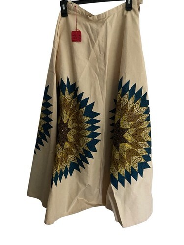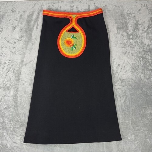 Vintage 70s Lurex Abstract A-Line Maxi Skirt Gold Black Red Blue Green Purple L