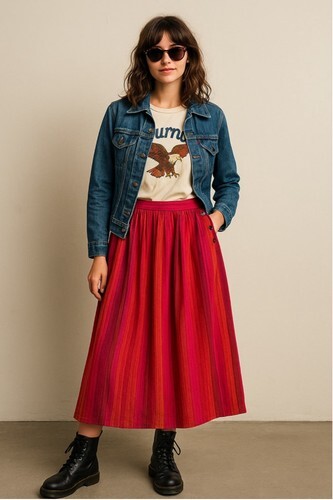Vintage 70s Lurex Abstract A-Line Maxi Skirt and 24 similar items
