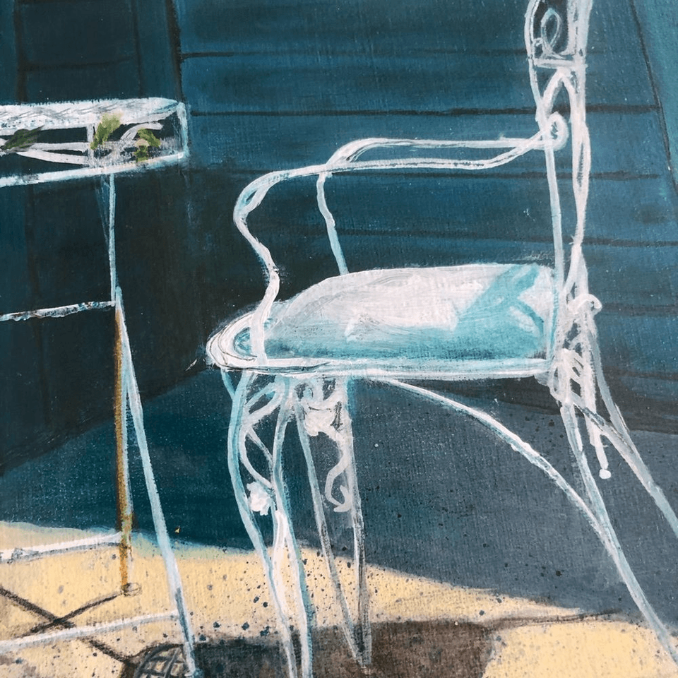 Boardwalk in Saugatuck Michigan painting on canvas, print double matted but unframed. Signed by artist Alexis McErlain and sold at a gallery in Saugatuck, MI. Approximately 11? x 14?. Some dents and dings in the matting from storage, see pics.
