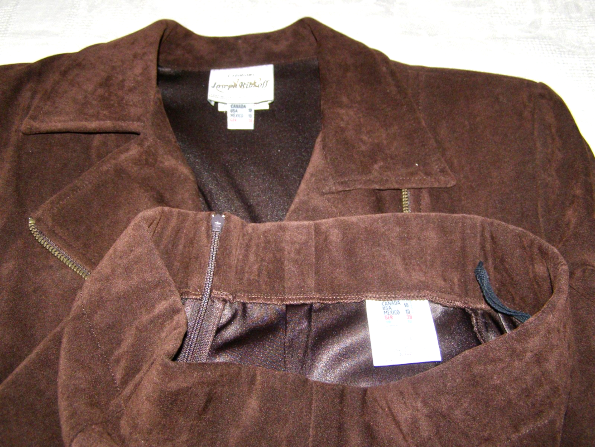 VINTAGE JOSEPH RITKOFF JACKET + SKIRT SET: BROWN BELTED JACKET + STRAIGHT SKIRT