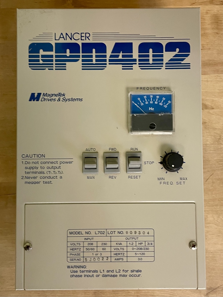 Lancer (Magnetek) GPD402 (L702) VFD IN:1 or 3Φ Out: 3Φ 3 A 0.75 HP 230 VAC