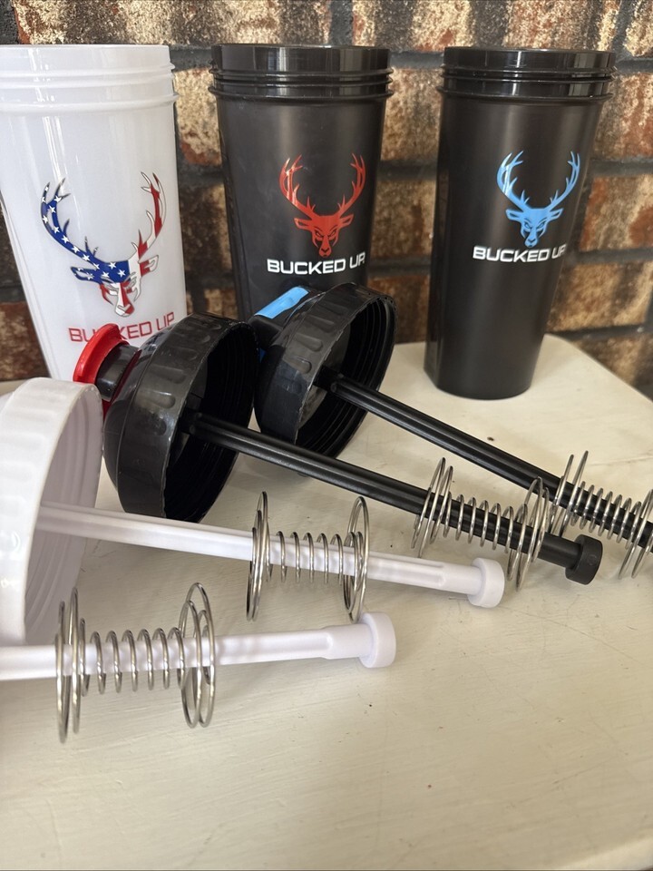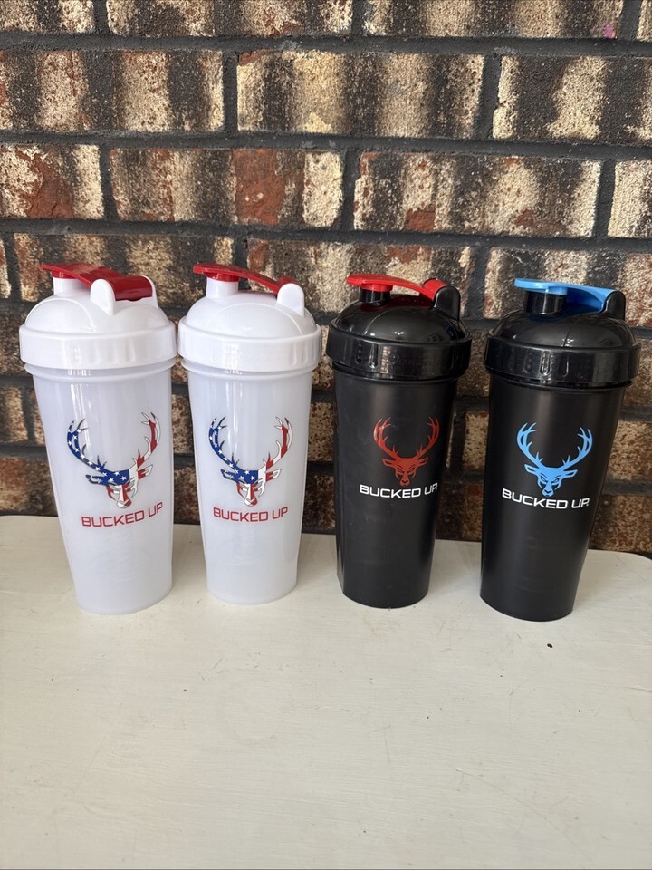 Bucked Up The Perfect Shaker Lot Of 4 White X 2, Black/red, Black/blue