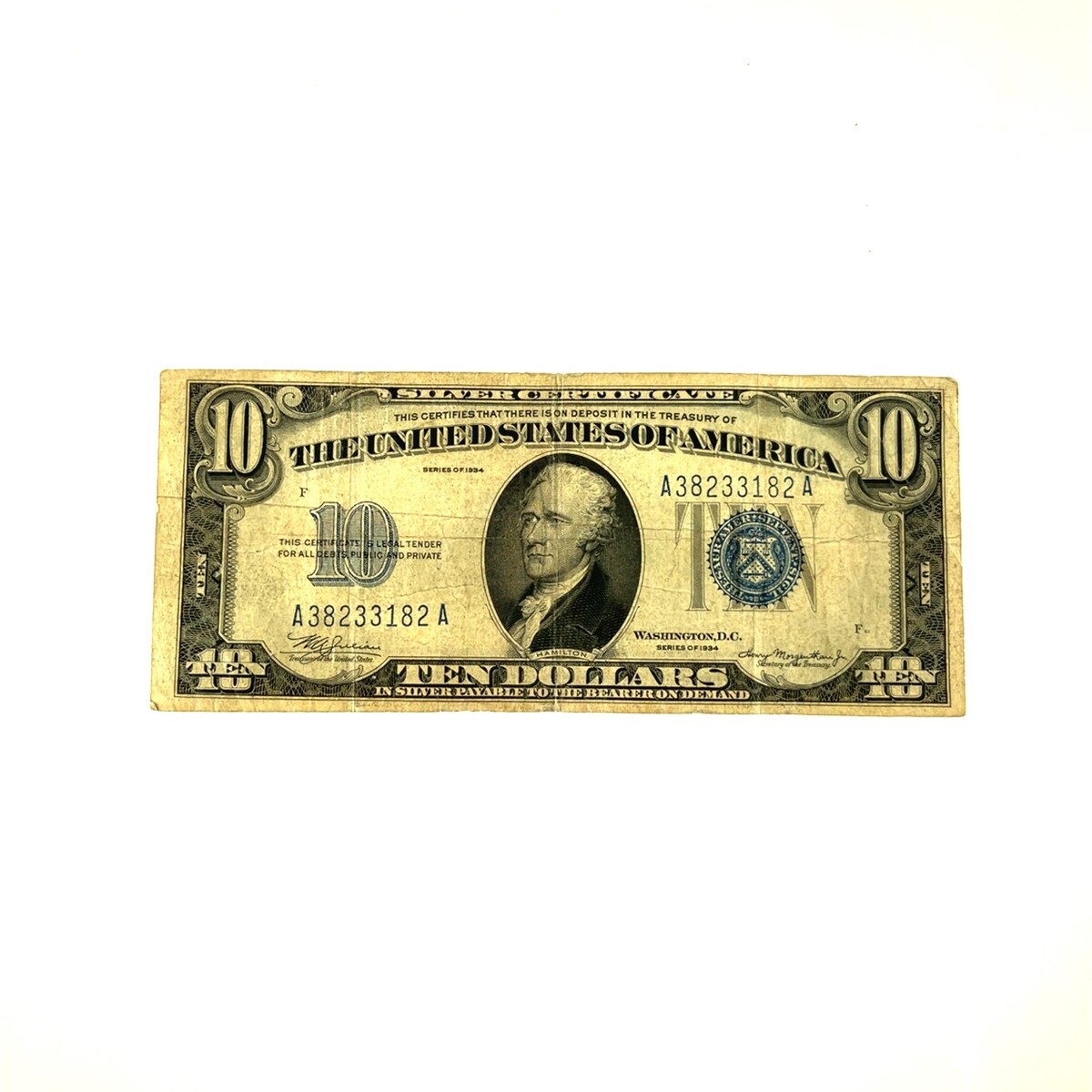 Series of 1934 $10 US Silver Certificate FR #1701 Fine Condition