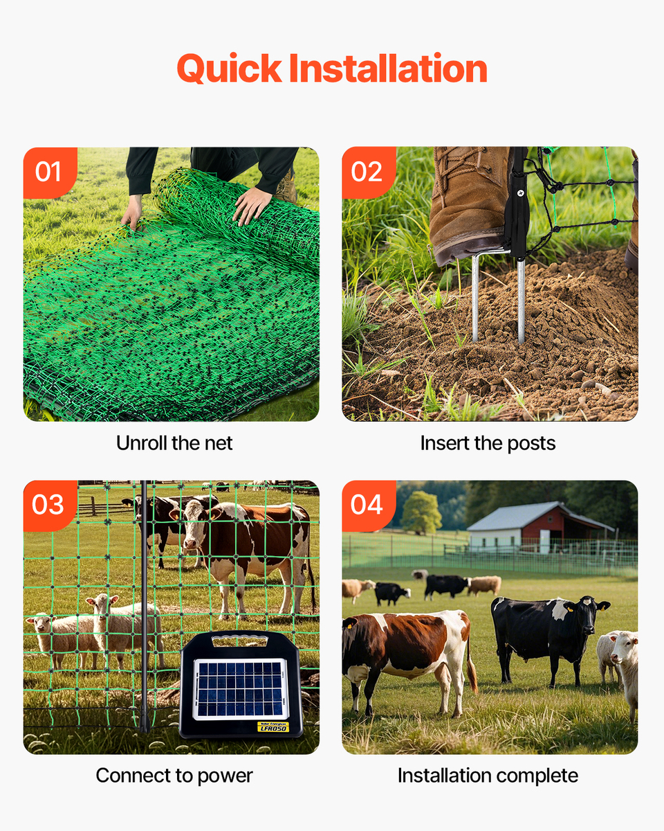 Effective Electric Current: The electric net fence precisely controls the intensity of the electric current, effectively protecting without harming animals. It ensures the security of your poultry and livestock while maintaining long-term protection of the fence.