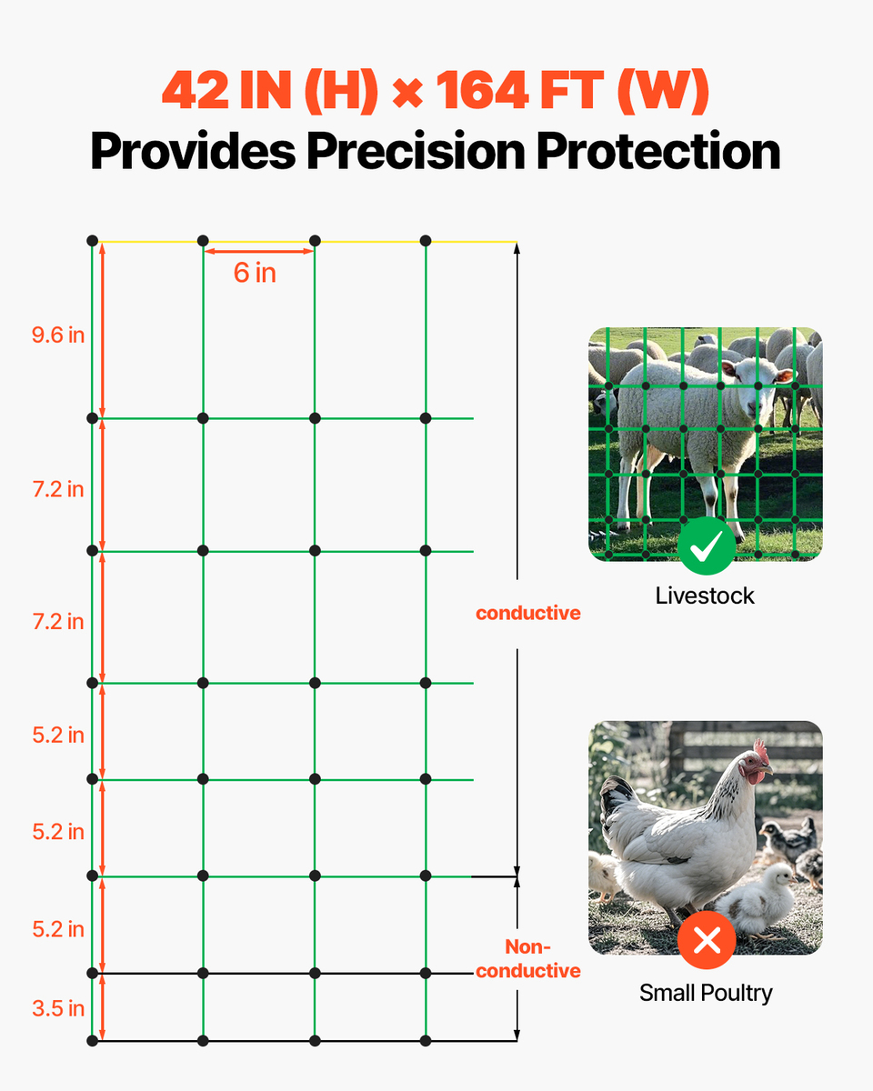 VEVOR Electric PE Fence Netting, 42 in (H) x 164 ft (L), Used in Backyards
