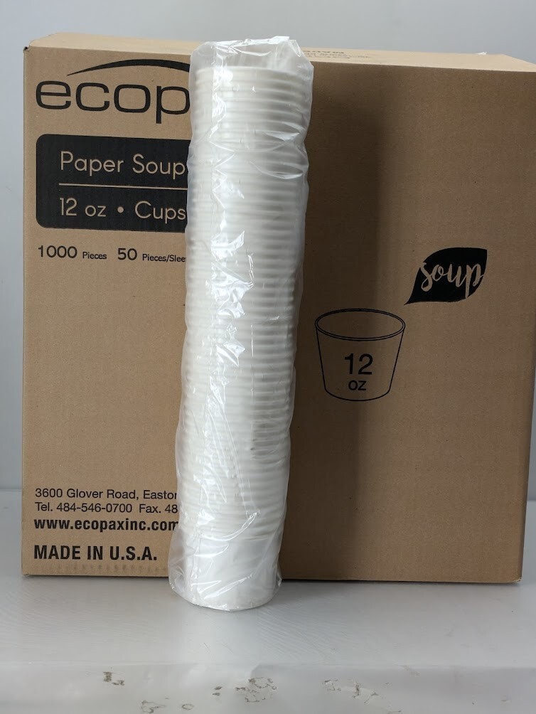 Ecopax Disposable Meal Bowl Cup Paper Containers No Lid Soup 12 oz 1000 Count