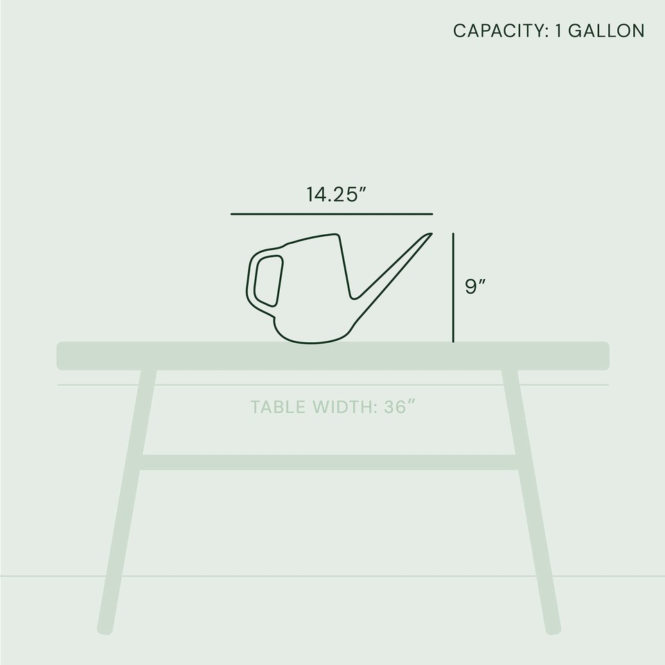 The Bloem Fern Water Can's long-stem spout allows for controlled water flow, making it easier to target those hard-to-reach plants and places. This 1-gallon capacity watering can offers an ergonomically designed handle for comfort and hand placement. Large top entry allows for simple water filling. Constructed of high-quality durable plastic. Maintenance free, easy to clean, and UV-protected for fade resistance. Designed with durability in mind for indoor and outdoor use this modern, sleek watering can look great on the shelf as a showpiece. Keep your garden refreshed with this watering can that gives personality to your favorite garden or watering activities.