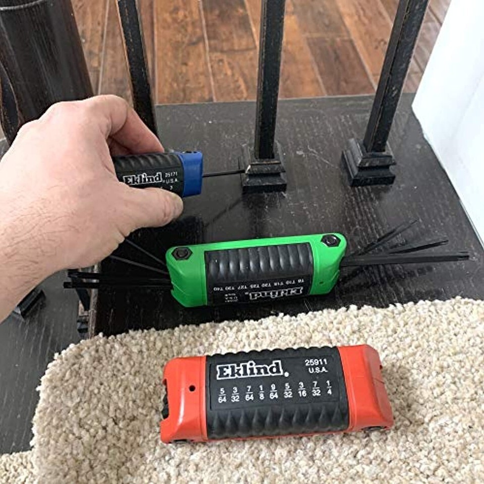 EKLIND TOOL COMPANY is America's leading manufacturer of high quality, industrial grade hex keys, made with pride in the U.S.A. since 1950. The EKLIND 25911 Ergo-Fold Fold-up Hex Key allen wrench - 9pc set SAE Inch Sizes 5/64-1/4 meets the most stringent requirements of professional mechanics, tradespeople, do-it-yourselfers and hobbyists.