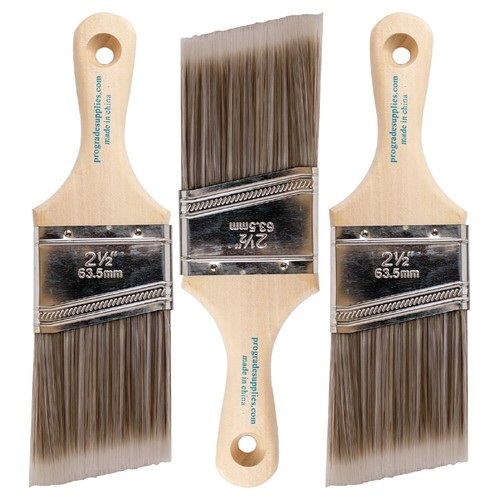Linzer paint brush, series: professional 2655, 3 in width brush, angular chiseled china bristle trim, 3-1/4 in trim length, black trim, stainless steel ferrule, wood handle, natural handle, 11/16 in thickness, for oil based paints and stains. This product is manufactured in United States.