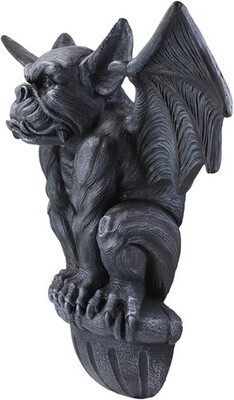 ? This Crouching Gargoyle Wall Decor Sculpture is made of designer composite resin, hand painted and polished.