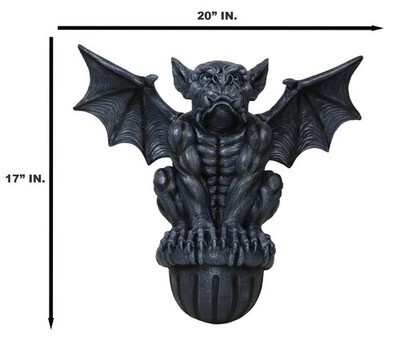 ? This Crouching Gargoyle Wall Decor Sculpture measures 17" Tall, 20" Wide and 8.25" deep approximately. It weighs about 7 pounds.