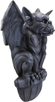 ? Imagine the drama when this menacing gargoyle hangs over your castle's doors or walls. With bat-like wings, this intimidating night warden crouches from his gothic plinth ledge in a sculpture full of imagination. Intricately sculpted, then cast in quality designer resin and hand-painted to resemble aged stone, this piece can be found only at Ebros Gift!
