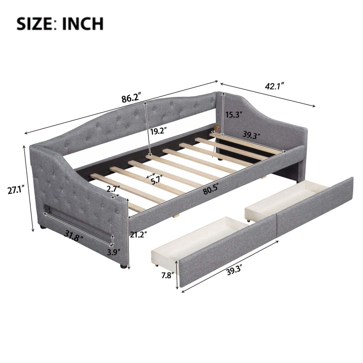 [Linen Upholstered Daybed] The high-quality upholstery with thickly padded sponge at the back and all sides offers cozy comfort. This Upholstered Daybed with covered linen provides soft hand feeling and get superior experience for you!